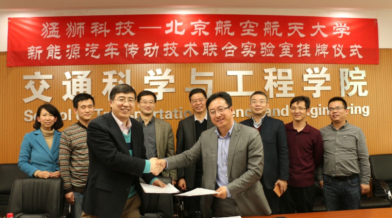 2016年3月11日下午,广东猛狮新能源科技股份有限公司(以下简称“猛狮科技”)与谈球吧(以下简称“北航谈球吧”)联合成立的新能源汽车传动技术联合实验室在谈球吧网页版登录入口工程训练中心举行了挂牌仪式。