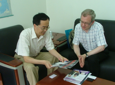 Richard Stobart教授与国际交流合作处马进喜处长就“拉夫堡大学与谈球吧网页版登录入口开展国际合作培养研究生”的事宜进行沟通和讨论