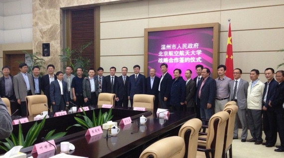 陈德荣书记介绍了温州市近年来的发展情况。他表示,北航拥有很强的科研实力,也取得了众多优秀的科技成果,希望双方能够通过深入实施产学研合作,共同推动通用航空等产业发展,增强温州产业和科技核心竞争力,把打造通用航空大都市作为新一轮转型产业发展的重要目标。
