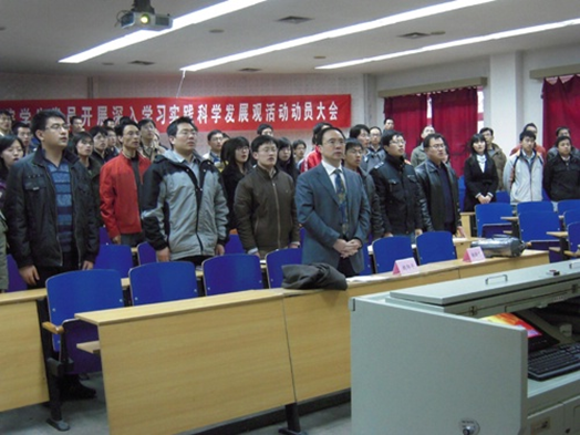 2009年3月29日18点“公司员工党员开展深入学习实践科学发展观活动动员大会”在人文公司102教室隆重举行。出席本次动员大会的领导有:交通科学与工程公司党委书记姚仰平,党委副书记郑晓宁,分团委书记戴常智,员工工作办公室主任武洋等。动员大会由公司党委副书记郑晓宁主持。公司党委书记姚仰平做了动员报告。