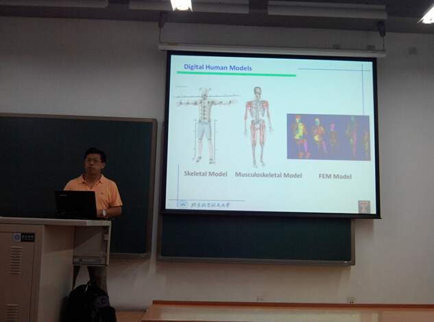 杨教授的报告题目为“Digital Human Modeling and Simulation for Design and Engineering”。数字人体模型作为“汽车-人-道路”系统中的重要组成部分,已经成为汽车研发时所需借助的重要手段。杨教授指出,以往使用的人体模型通常都是基于人体实验的经验构建的,这种人体模型在某些特定工况下具有较好的有效性,但缺乏理论依据,且无法通过人体实验获得极端工况下的实验结果,对于汽车研发仿真带来不便。