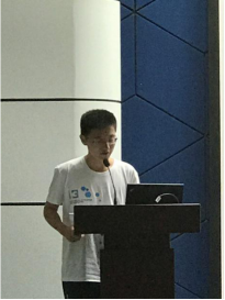 2017级新生代表曹航同学给大家分享了他自己从刚入学的迷茫期到能给自己较好定位的历程。他有一句话很能引人共鸣“人啊,一定要给自己一个定位,不要随波逐流”。他希望同学们能尽早明确方向,不断前行。