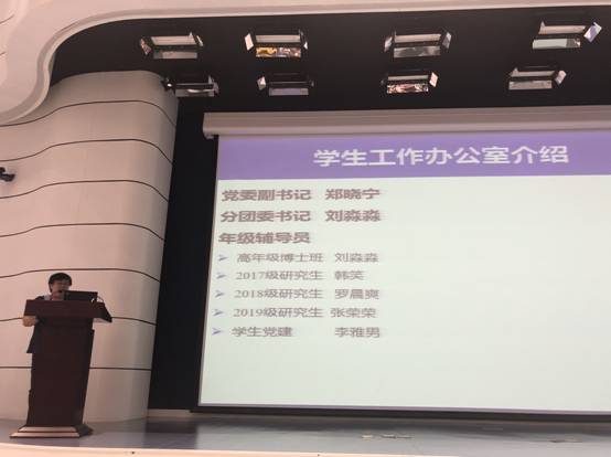 研究生教学秘书甘老师介绍了研究生选课及培养要点,对2019级新生的选课要求作出了解释说明。