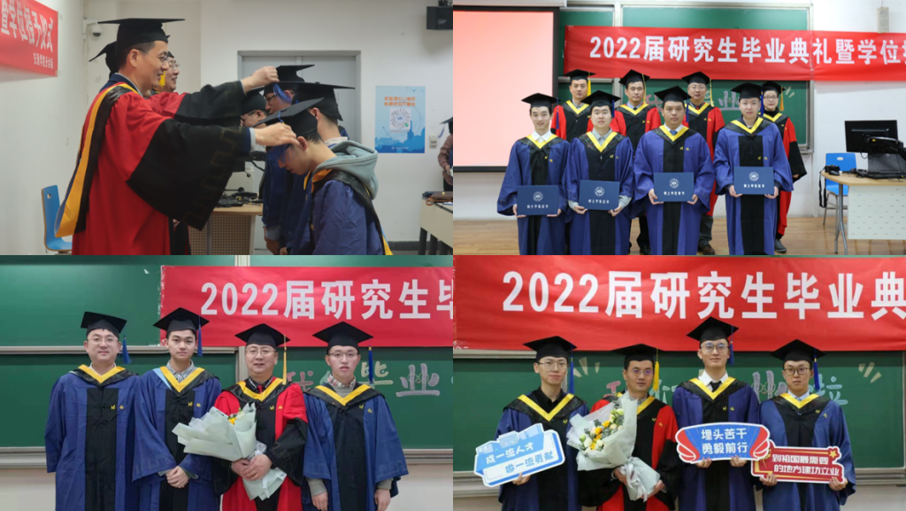 在随后举行的学位授予仪式上,公司与会老师为毕业生们拨苏正冠、颁授学位证书并合影留念。