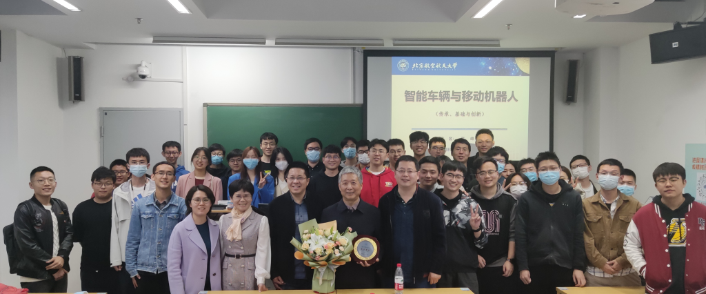 高峰教授为师生做了名为“传承、基础与创新(智能车辆与移动机器人)”的主题学术报告,由汽车工程系殷莎老师主持,线上线下共80余位师生及员工聆听了此次学术报告。高峰老师分享了自己的教育经历及学术传承情况,并指出传承是对先人最好的纪念。向大家展示了其团队近40年在智能汽车、移动机器人相关领域的研究基础与创新工作,分享了其正在进行的成果转化工作进展。最后,以其对于无人战车的设计构想视频结束了本次报告,引发全场的喝彩与掌声,并在会后与大家进行了面对面的交流。