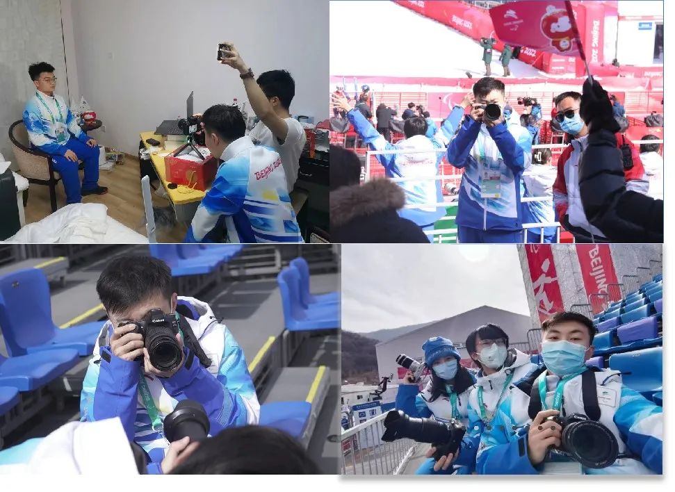 白天顶风冒雪、手提肩扛摄影摄像器材奔波于高山赛场,拍摄记录广大志愿者提供暖心服务的影像素材近4万条;夜晚带队整理素材、剪辑视频、撰写新闻,创作冬奥志愿服务主题VLOG作品20余部、推出志愿者特刊12期。