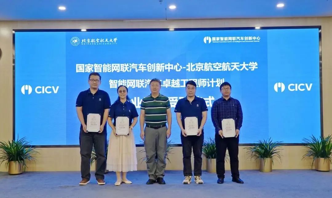 杨世春对创新中心产教融合工作取得的成绩给予了高度评价。他表示,参与产教融合项目的员工们要把握学习机遇,以饱满热情面对未来的学习工作生活。会议同期,杨世春为“智能网联汽车卓越工程师计划”企业导师颁发了聘书。