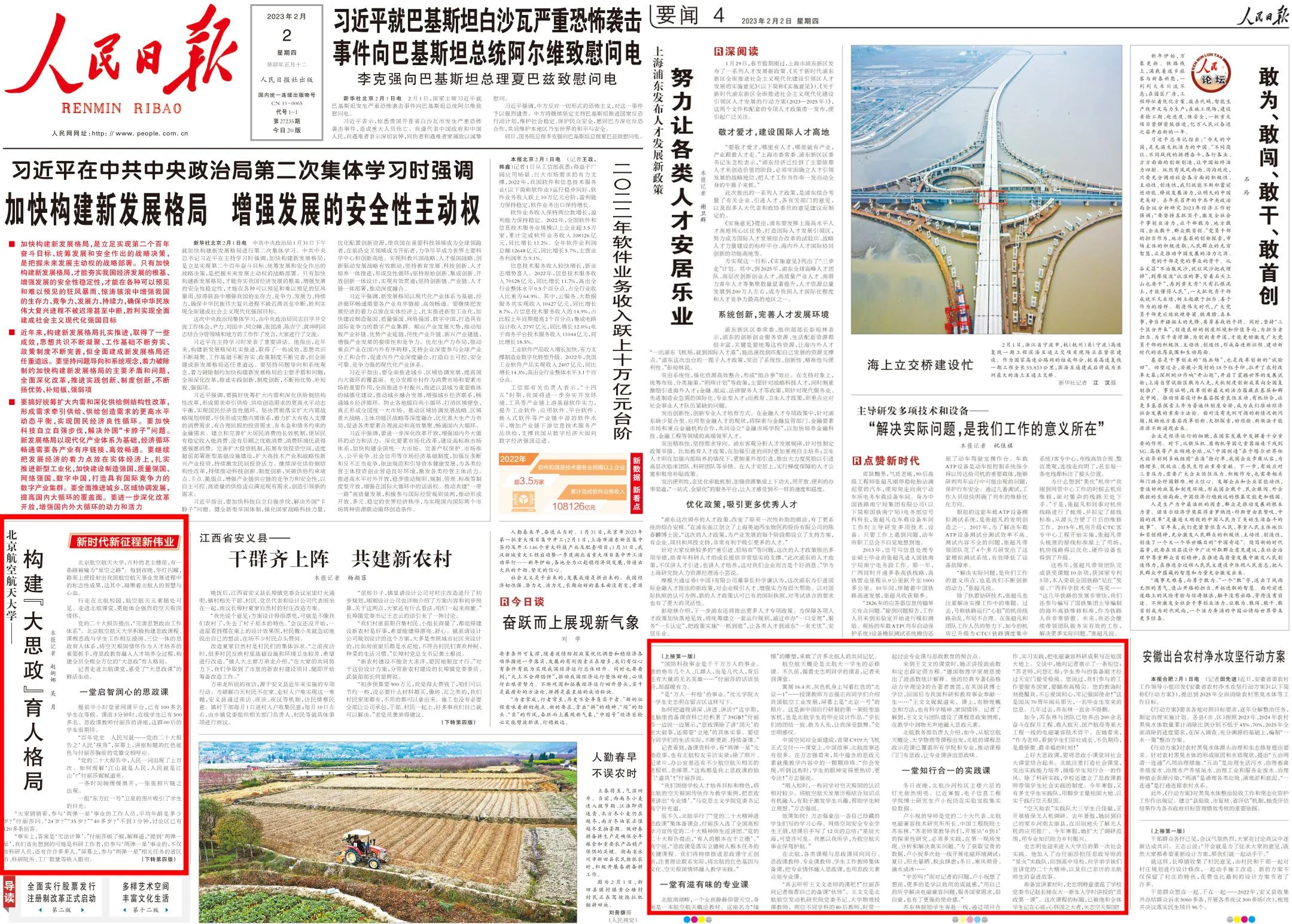 要扎实推进思政课程与课程思政协同育人,就要将思政教育与学科特色、专业特色、课程特色等深度融合,将科研、教学、人才、事件等蕴含的思政元素动态融入专业课程教学。自2020年秋季学期试点开设《习近平新时代中国特色社会主义思想概论》课以来,公司探索将以“空天报国”为内核的北航精神融入课程教学,设置了“科技创新与强国使命”专题,邀请院士团队参与授课。“太震撼了!”北航知行书院员工李骄娴表示,“这样的思政课完全超出了我的预期。”这样的教学改革表明,专业课中的思政元素不仅可以为专业课所用,也可以成为思政课的鲜活素材。公司持续加大课程思政建设投入,深化课程思政与一流课程一体化建设,先后打造136门校级课程思政示范课,实现公司全覆盖,出版《谈球吧网页版登录入口课程思政优秀案例汇编(航空航天篇)》,提升教师课程思政建设能力,使课程思政元素成为专业教学的兴奋点和创新点。相关做法两次获《中国教育报》头版头条报道,2023年2月获《人民日报》头版报道。