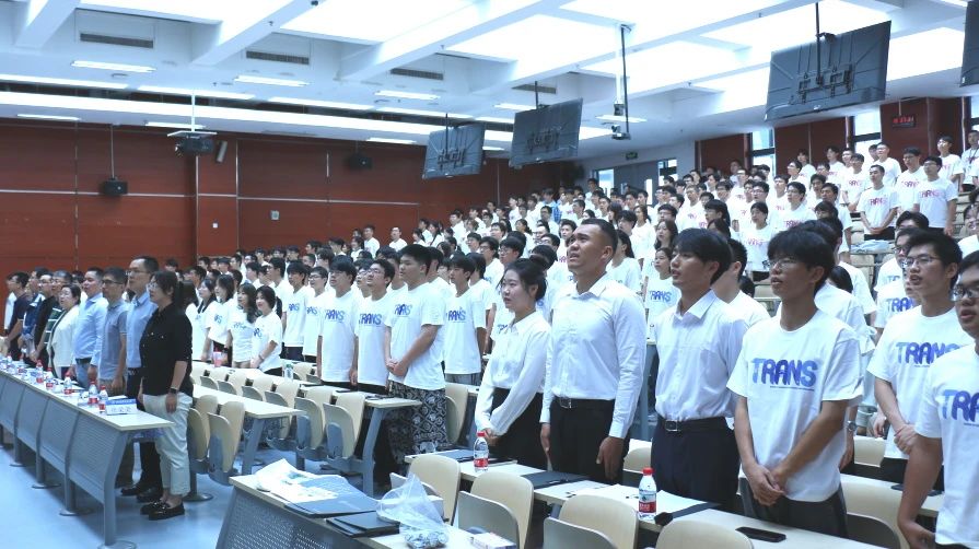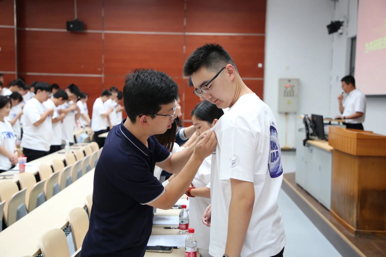 在庄严的国歌声中,典礼正式拉开序幕。公司领导老师为本研新生代表授予院徽,全体新生同步将院徽佩戴在胸前,标志着正式成为交通大家庭的一员。