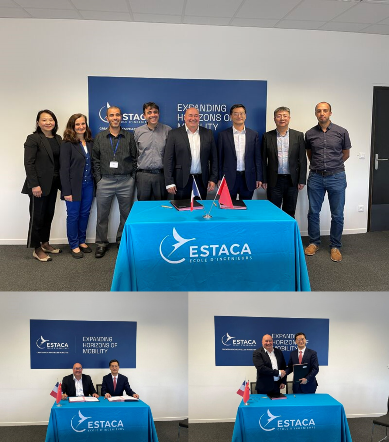 出访期间,杨世春经理随代表团访问了法国高等航空技术与汽车制造公司(ESTACA)。在法国高等航空技术与汽车制造公司,代表团参观了无人机和智慧城市实验室,王云鹏董事长与董事长让-米歇尔·迪勒佩尔(Jean-Michel DUREPAIRE)会面交流,双方就建立联合实验室、开展博士双学位项目、举办员工创新竞赛等交换了意见,达成多项务实成果。王云鹏代表公司,与让-米歇尔·迪勒佩尔正式签署校级博士双学位联合培养协议。