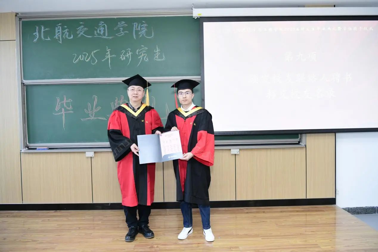 杨世春宣读2025届春季北京市及北航优秀毕业生名单并为获奖代表颁发证书。