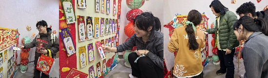 “新春嘉年华”环节,师生们一起猜灯谜抽奖,用毛笔写下福字与对新春的美好期许,亲手体验拓印福字,感悟中华传统文化魅力,现场持续洋溢着浓厚的节日氛围和欢声笑语。