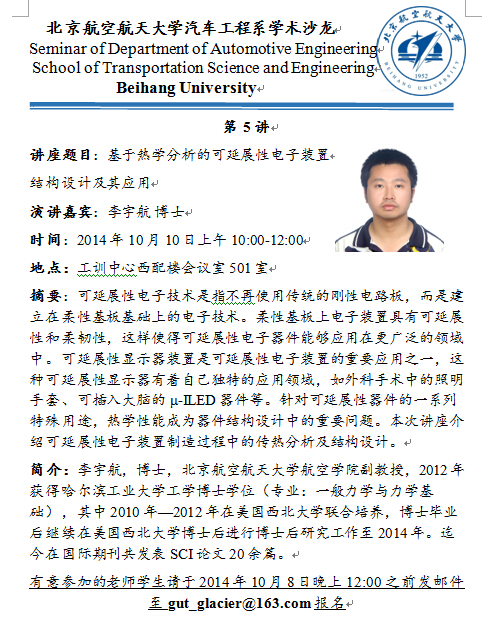 汽车工程系学术沙龙第5讲预告—基于热学分析的可延展性电子装置结构设计及其应用