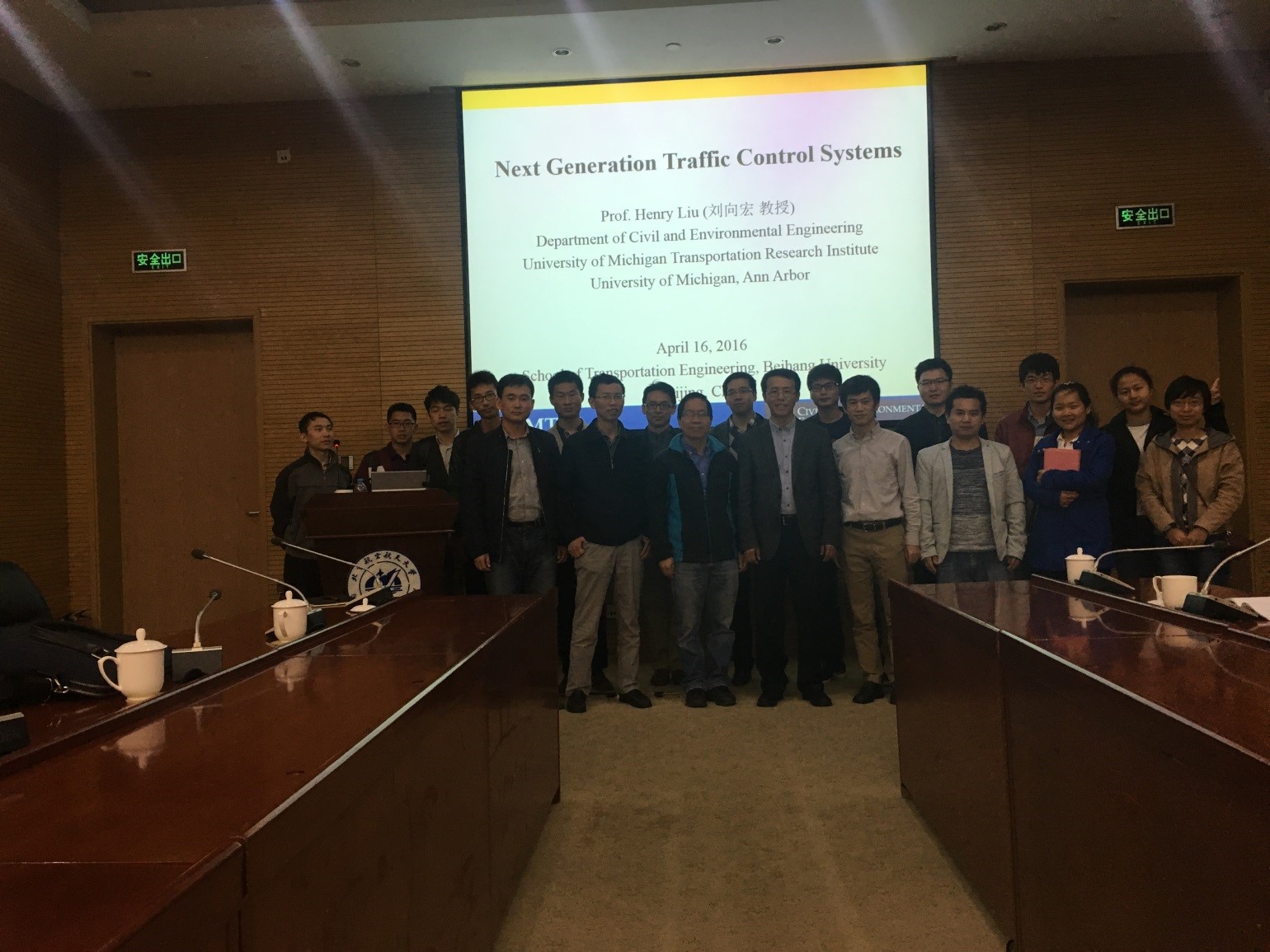 2016年4月16日上午10点,应谈球吧邀请,Henry Liu教授在北航新主楼第八报告厅做了题为“Next Generation Traffic Control System”的报告,来自谈球吧、管理公司以及清华大学的师生到场参与、热烈讨论。