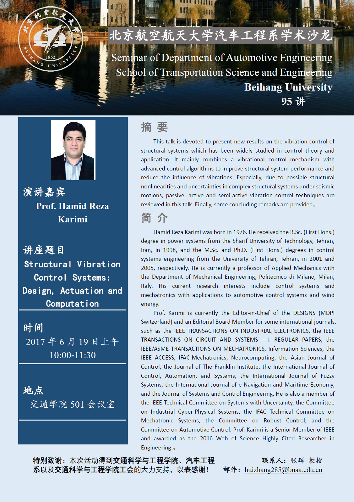 汽车工程系学术沙龙第95讲预告