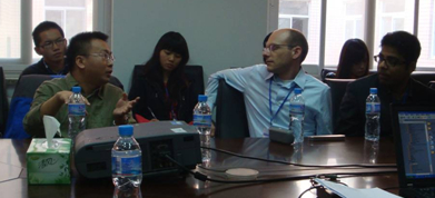 首先,在简短介绍母校概况及校园生活后,Simeon做了题目为《Enabling obstacle avoidance for google maps navigation service》的报告。他的近期研究是设计了一个小型WebGIS应用系统。该系统可以通过细致系统的分析来识别障碍,从而获得最佳路径。Simeon进一步介绍了此系统的技术、数据库、合作、路线分析的研究进度,并说明了其优缺点。此项研究的意义在于为灾害营救活动提供有效的数据信息。