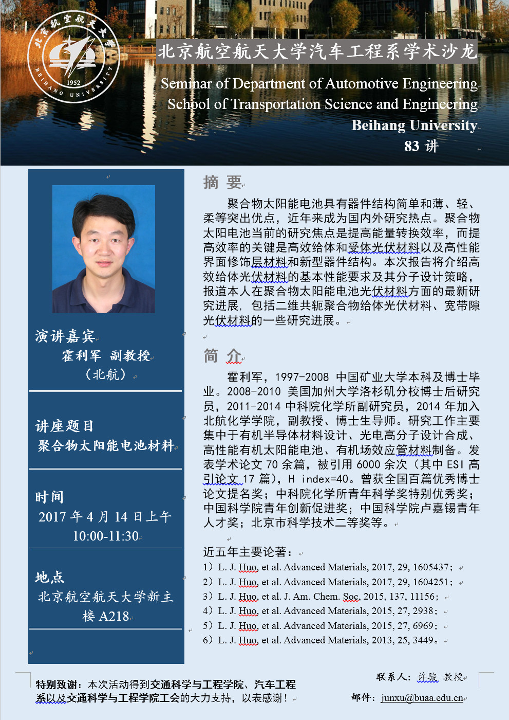 汽车工程系学术沙龙第83讲预告——聚合物太阳能电池材料