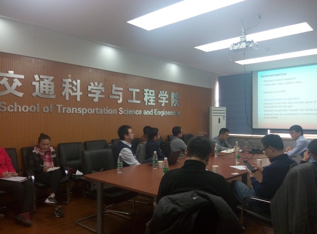 会上,孙立君博士主要介绍在新加坡开展的一项利用MATSim的智能体交通仿真的项目。这项应用将会帮助未来交通模型的开发、政策的制定与管理(比如服务充电汽车的智能电网、拥挤收费制度等)、以及新兴交通工具的可行性(比如自动车等)。孙立君博士做了详细的剖析,为参与者讲述了数据分析思路和方法,气氛活跃,与会的员工和老师们积极参与,营造了一股积极向上的学术氛围。