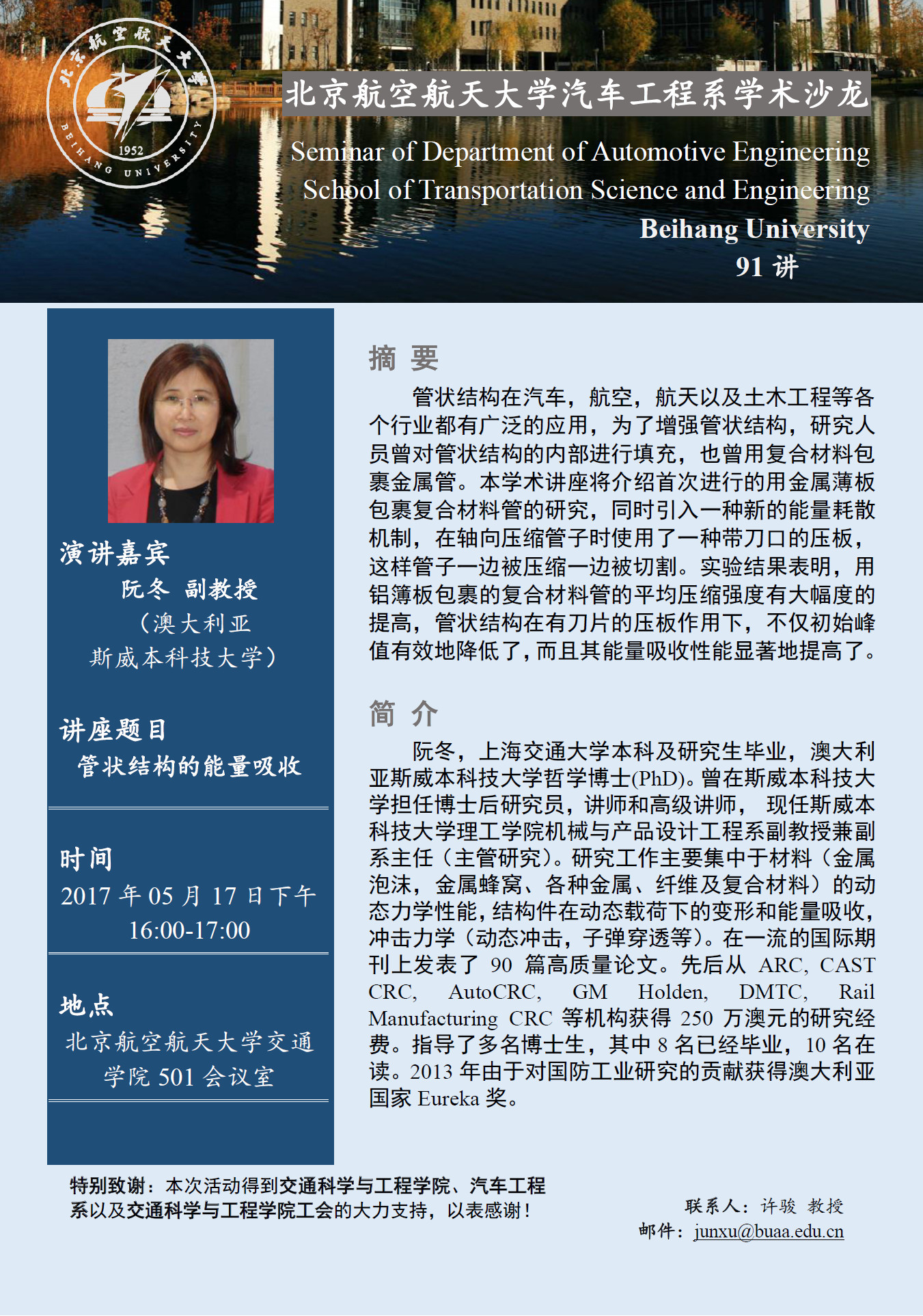 汽车工程系学术沙龙第90、91讲预告