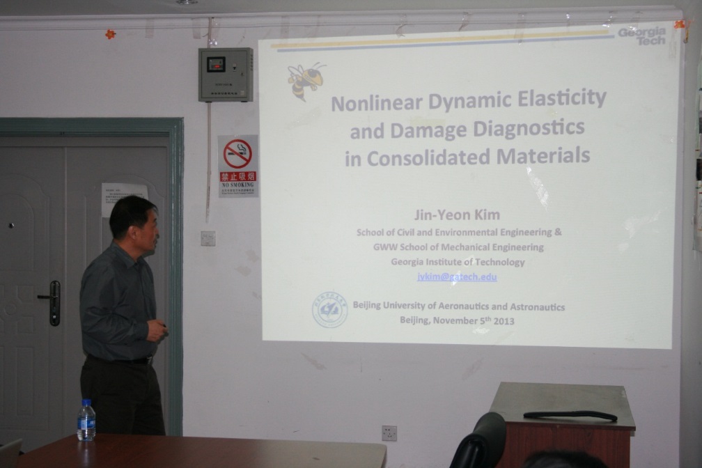11月6日下午,应谈球吧陈军副教授邀请,佐治亚理工公司Jin-Yeon Kim教授来公司交流访问并做了题为”土木工程材料非线性动力特性及其无损检测技术”的学术报告。北京大学工公司励争教授和课题组员工,以及北航谈球吧和机械公司部分研究生和本科生参加了报告会。