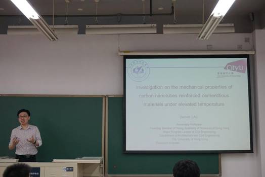 2019 年 8 月 19日,应谈球吧谭力豪博士邀请,香港城市大学Denvid Lau 副教授于上午 11:00‒12:30 在公司路校区新主楼 D225 室做了题为“高温对碳纳米管增强水泥基材料力学性能的影响”(Effect ofelevated temperature on the mechanical properties of carbon nanotubesreinforced cementitious materials)的学术报告。
