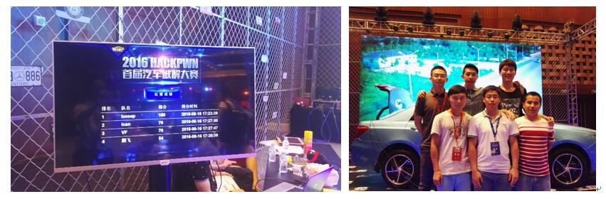 2016年8月16日下午,在2016年中国互联网安全大会上,由360汽车信息安全团队主办、比亚迪汽车和英特佩斯公司赞助支持的2016 HACKPWN首届汽车破解大赛在北京国家会议中心举行。本次汽车破解大赛由北航、浙大、烽鸟出行等高校及单位组队参加,比赛中要求各参赛队按照比赛规则和要求分别破解车门、车灯、传感器等车身元器件,最后通过逆向协议对车辆实现控制。
