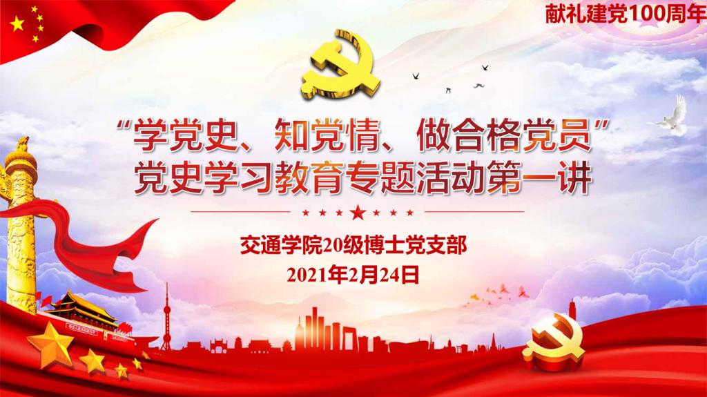 2021年2月24日下午,2020级博士党支部开展了“学党史、知党情、做合格党员”线上学习活动,党支部全体党员及积极分子参与了活动,深入学习贯彻习近平总书记在党史学习教育动员大会上的重要讲话精神,并进行了分享交流,决心以优异的成绩迎接建党100周年。