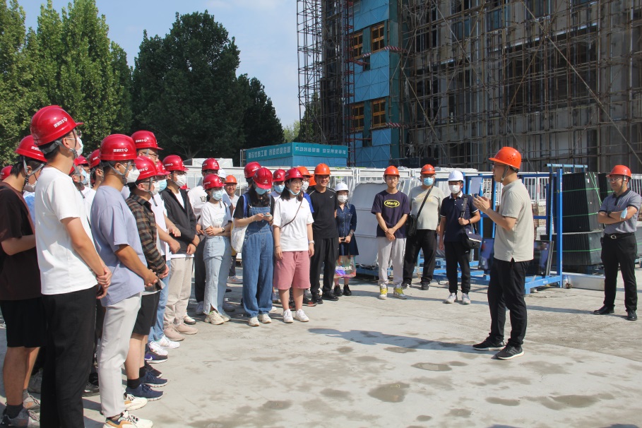 参加党日活动的全体成员首先参观了沙河校区一至四号楼项目的施工现场。校园规划建设与资产管理处尚坤副处长介绍了在施项目的整体情况和建设规划,并对项目的施工亮点做了细致讲解。