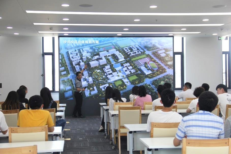 在沙河校区八号楼13层报告厅,校园规划建设与资产管理处党支部书记邹煜良为大家介绍了沙河校区总体规划方案、各项在建项目的具体情况和施工进度,以及沙河校区图书馆的建设方案。