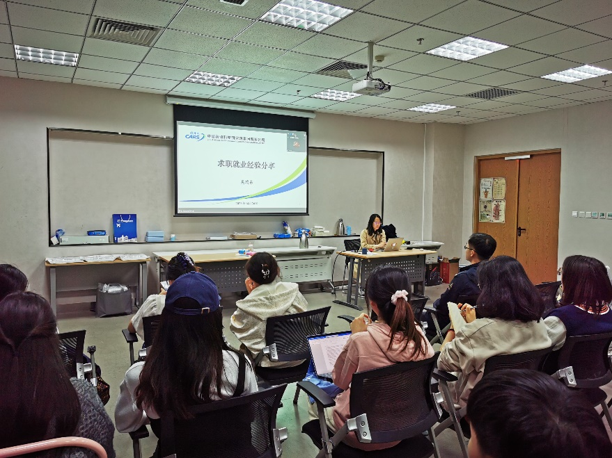本次分享活动现场反响热烈,同学们就关注的问题和报告嘉宾展开了热烈的讨论,更加细致地了解了就业中遇到的相关问题。讨论过程中,丁悦同志结合自身就求职经历进行了现场补充分享,积极为同学们提供就业前沿资讯。
