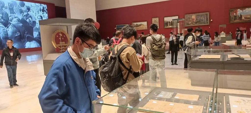 到达国家博物馆后同学们首先参观了国家博物馆“复兴之路新时代”大型主题展览。众多生动经典的史料图片带领大家回顾了党的十八大以来,以习近平同志为核心的党中央团结带领全国各族人民,统筹推进“五位一体”总体布局,协调推进“四个全面”战略布局,党和国家各项事业取得的历史性成就、发生的历史性变革。