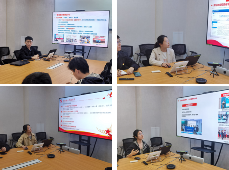会上,三名员工党支部书记对党支部党创基金开展情况进行交流汇报。交通运输系研究生第二党支部的支部书记李田琦分享了前往李大钊烈士陵园开展清明祭扫的活动经历以及踏歌智行企业党支部共建活动的准备情况;土木与机场工程系研究生党支部书记李延杰围绕参观中国共产党历史展览馆活动、理论学习成果等几个方面进行分享;飞行器适航工程系研究生党支部的支部书记张梦玉介绍了支部政治理论学习活动和“交通新语”员工宣讲团筹备工作的内容。