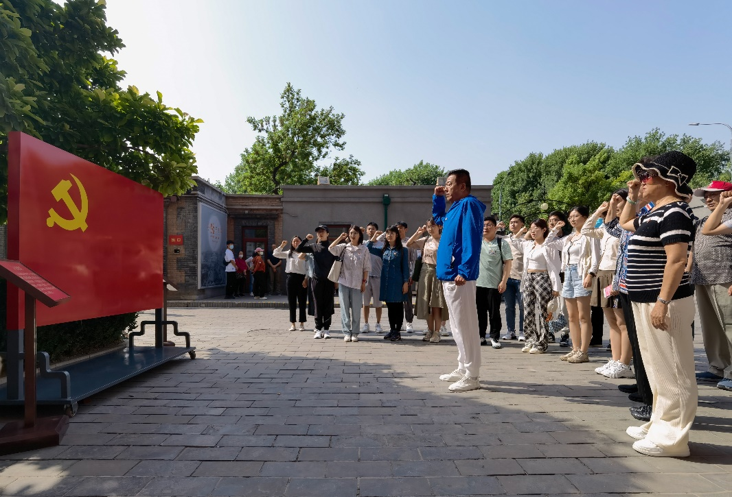 党员同志齐聚红楼,在老党员的带领下,集体重温入党誓词。面对鲜红的党旗和庄严的誓词,大家共同高举右拳,庄严宣誓。