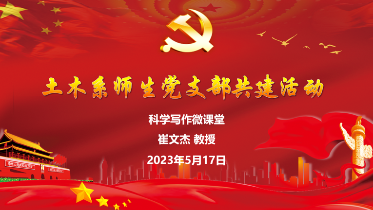 为进一步贯彻党建工作与科研、人才培养工作深度融合理念,2023年5月17日,谈球吧土木与机场工程系研究生党支部联合教工党支部于沙河主楼B706开展成才支持系列讲座-科研写作微课堂活动,本次活动邀请到崔文杰教授为同学们分享科研经历和写作技巧。