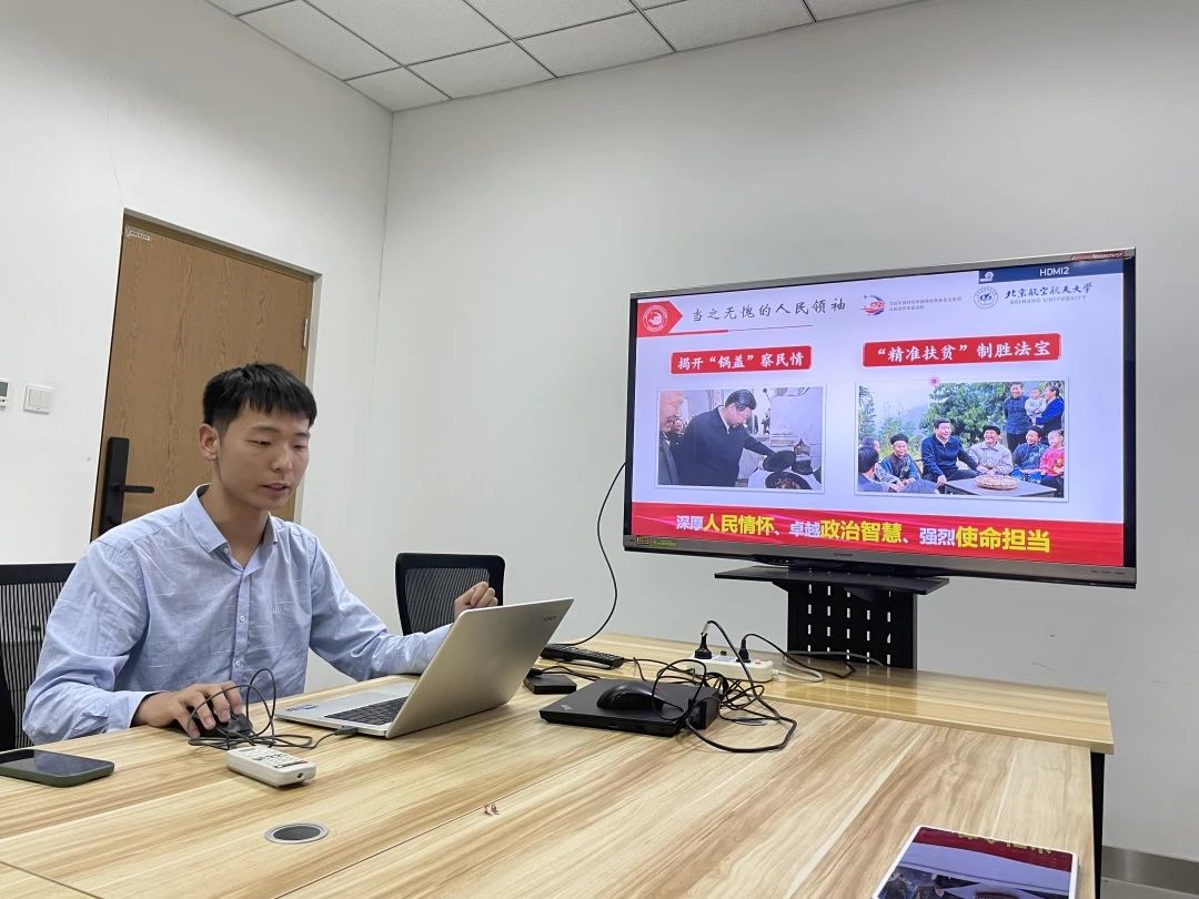 本次学习活动邀请北航研究生宣讲团讲师李港以“‘两个确立’——新时代最重要的政治成果”为题进行专题宣讲。中国共产党确立习近平同志党中央的核心、全党的核心地位,确立习近平新时代中国特色社会主义思想的指导地位。这是新时代最重要的政治成果。为了让支部的同志们更好地理解“两个确立”的内在逻辑,李港同志介绍了从彻底消灭绝对贫困,到人口大国成功走出新冠疫情大流行的奇迹;从反腐败斗争的压倒性胜利,到天更蓝、山更绿、水更清的“中国画卷”……带领大家回顾了以习近平同志为核心的党中央如何义无反顾地带领我们开展了具有许多新的历史特点的伟大斗争。