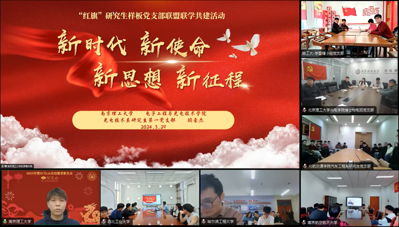 2024年3月29日下午,“红旗”研究生样板党支部联盟成功开展了本年度春季学期第一次共建联学活动。本次活动由北航谈球吧汽车工程系研究生党支部发起,邀请南理工电光公司光电技术系研究生第一党支部进行联学分享。联盟全体成员参会,本次会议由南理工电光公司光电技术系研究生第一党支部副书记李瑾煜主持。