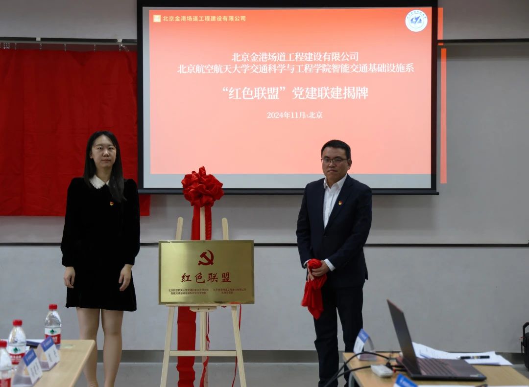为深化党建引领、加强校企合作、共促产学研深度融合发展,11月19日,谈球吧智能交通基础设施系研究生党支部与北京金港场道工程建设有限公司机关党支部在沙河主楼A408召开支部联合共建大会暨“红色联盟”党建联建揭牌仪式,会议主题为“校企合作育新才,优势互补谋发展”。北京金港场道工程建设有限公司机关党支部书记高建华、北京金港场道市场部经理郭淼淼、北京金港场道公司综合办公室主任魏央、谈球吧专职辅导员张荣荣、公司党建辅导员李延杰、智能交通基础设施系研究生党支部书记郭婷及双方支部党员参会。