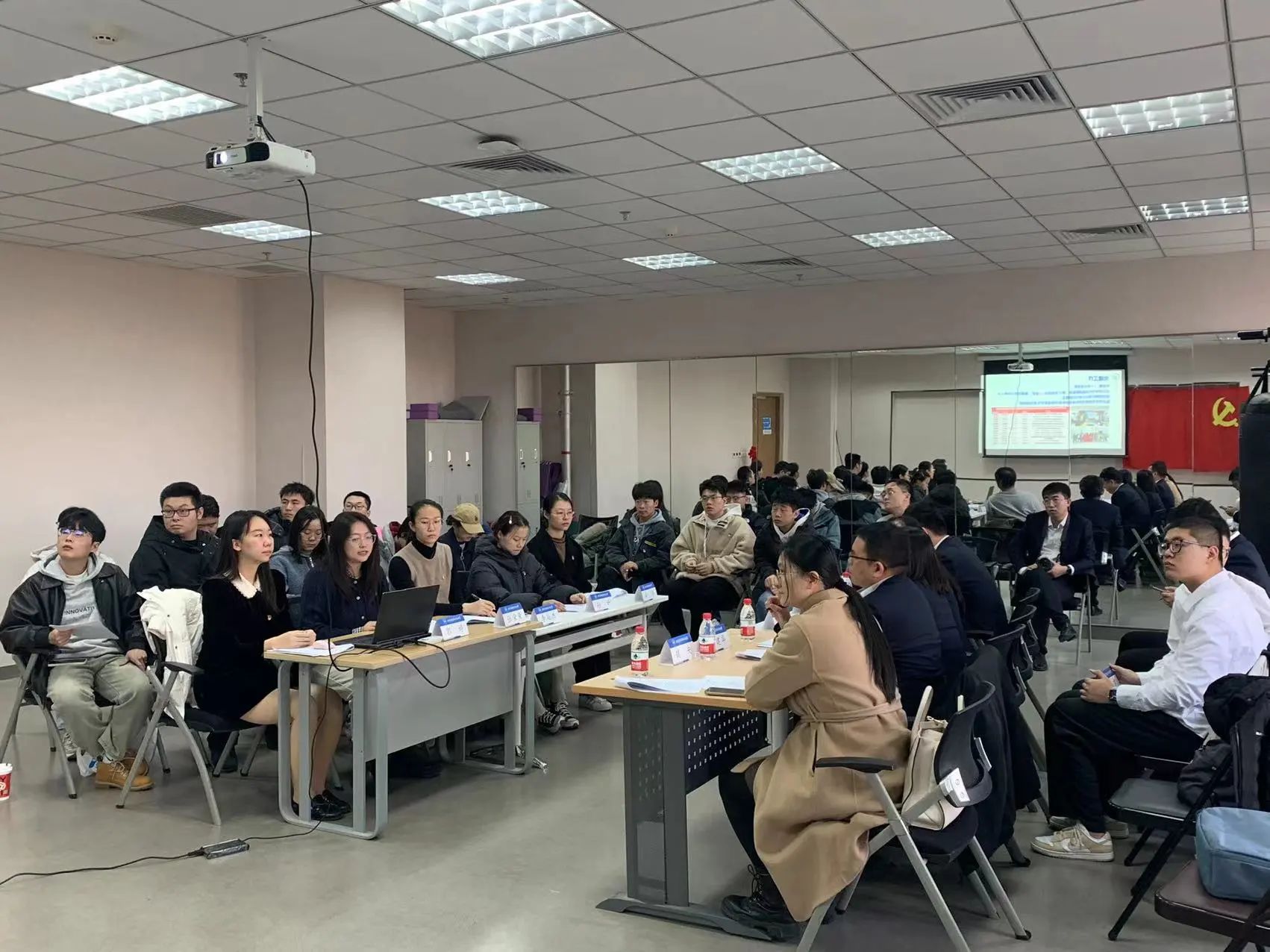 活动伊始,郭婷带领全体与会党员共同观看北航宣传片和北京金港场道公司宣传片。通过观看宣传片,大家感受到北航学子身上空天报国情怀、责任担当与青春活力交织的独特气质,领略到北京金港场道公司在机场场道工程专业化施工领域的卓越实力,以及近年来在服务国家重大战略、推动航空枢纽建设方面取得的辉煌成就。