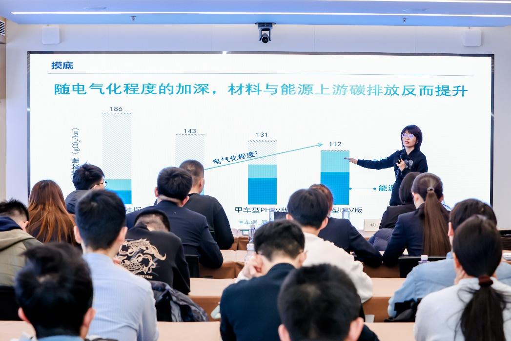 活动中,中汽政研首席专家石红围绕"双碳"目标下的汽车行业发展作了专题报告。报告深入解析了绿色低碳发展在汽车行业中的重要作用,为与会青年学子提供了专业指导。在随后的座谈会上,与会人员围绕汽车产业未来发展方向展开深入研讨,结合生态文明建设与国家政策要求,就推动行业创新转型的可行路径进行了充分交流。