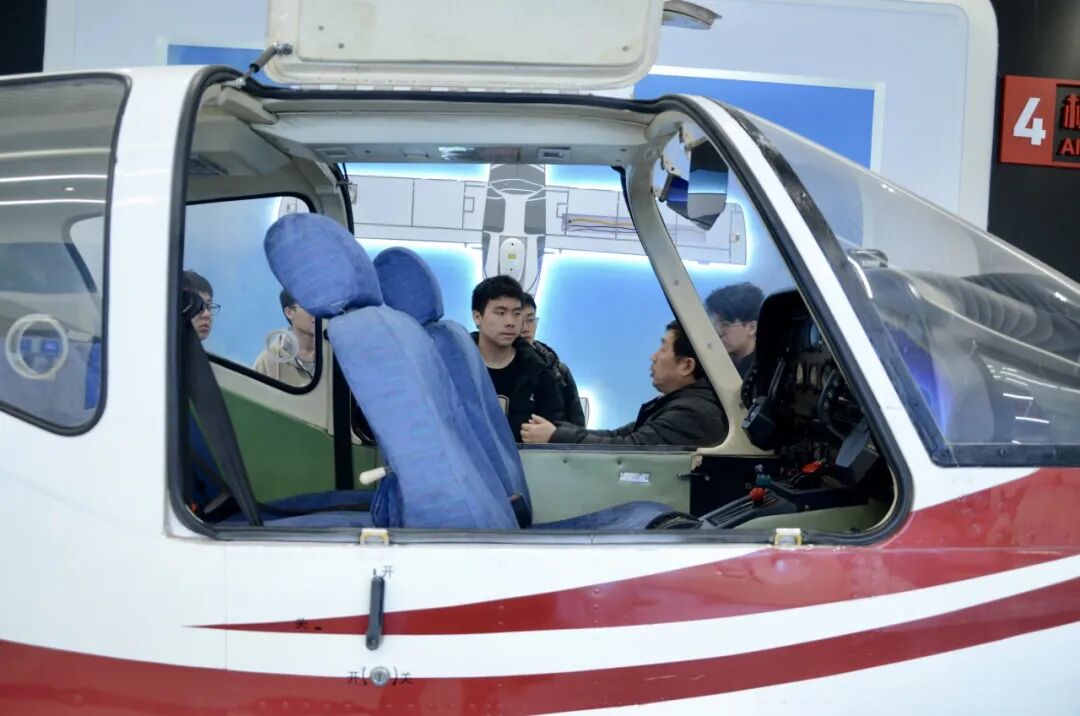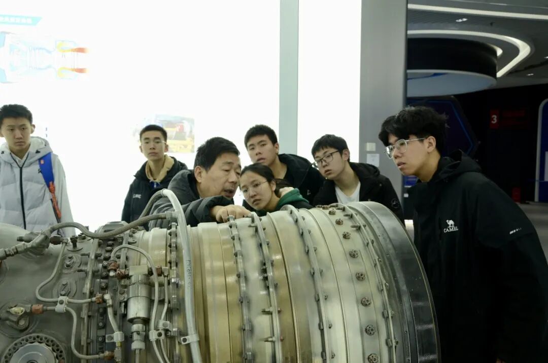 随后,大家来到了航空科技馆,深入探索了丰富的航空知识。在航空科技馆,从初代教练机到现代无人机,从活塞发动机到涡轮叶片,王教授以"结构解析+原理演示"的方式,将复杂的航空知识转化为生动课堂。同学们对飞机的动力系统、飞行原理等领域有了更加清晰的认识,一颗“空天报国”的种子也在大家心中埋下。“航空航天”从新闻热词变成了可触摸的职业路径,化身为具象的精神灯塔。