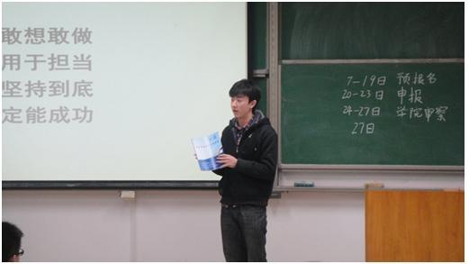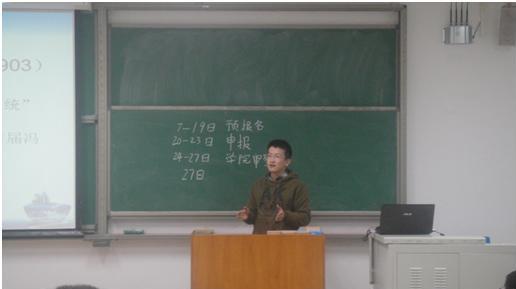 2013年3月24日,谈球吧科技项目介绍暨冯如杯宣讲动员会在沙河校区成功举办。此次大会由谈球吧科技实践部主办,旨在向将要参加比赛的同学普及竞赛相关知识,调动同学们的参赛热情。出席这次大会的主讲人有参加过各类科技竞赛并有丰富经验的10级同学,还有参加了创意大赛并获得很好成绩的11级同学,以及方程式车队的车手操杰儿同学。谈球吧12级很多对科技实践感兴趣的同学参加了这次动员会。