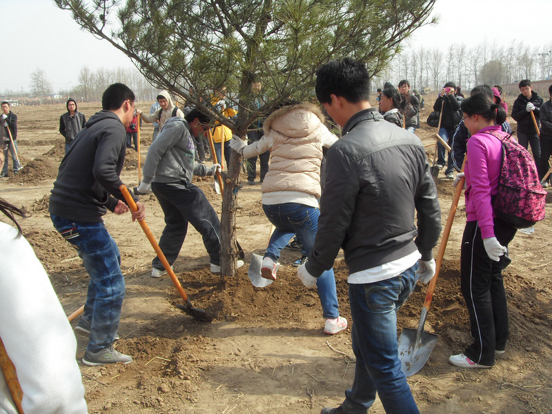 4月1日早上,全体参加活动的同学于沙河校区东门集合,集体坐车前往植树地点。到达植树地点后,经过岗前动员和植树培训,同学们便热火朝天地开始了植树工作,三或四人一组负责挖一个坑。中午,经过短暂休整,与北理工的同学一起举行了植树主题团日活动,然后同学们又兴致勃勃地参观了农业生态园。下午植树活动继续进行,回填、栽植、覆土,同学们有条不紊地按照流程亲手种下了一棵棵树苗。