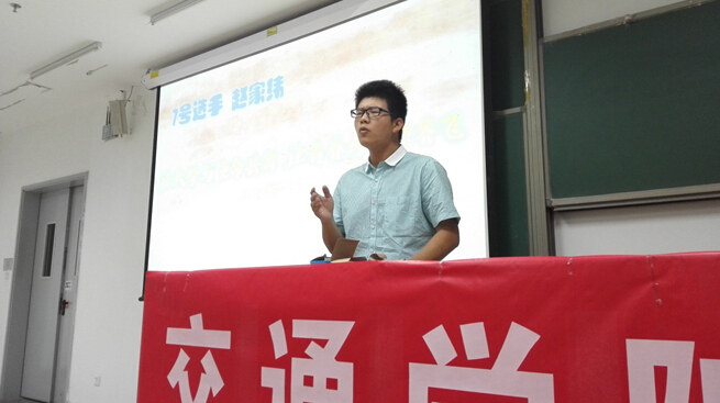 2014年11月2日晚,谈球吧新生演讲比赛“大学使命·青春梦想”在沙河校区J3-212顺利举行。担任此次演讲比赛评委的有谈球吧2014级辅导员李大伟,高等工程公司2014级辅导员王崇宇,软件公司2014级辅导员张爱松以及谈球吧2012、2013级演讲比赛一等奖获得者王明凯和张迎晨。来自谈球吧7个小班的优秀同学充分展示了他们的才华。