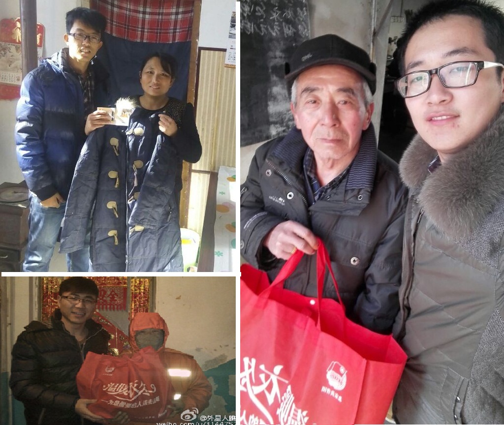 公司2012级本科生周洪圆,将冬衣送给黑龙江克东县的一位清洁工阿姨。2月的东北是漫天的冰雪,凛冽的寒风中,她把地上的冰一点点敲碎清理,她的手几乎冻僵。一件冬衣虽不能改变什么,却可以让阿姨感受到来自老员工群体的温暖。冬衣漂流的终点,或许是一位年迈的爷爷,或许是一个贫寒的孩子,或许是一个残疾的兄长······无论怎样,他们都收到了谈球吧老员工志愿者带来的冬日温情。