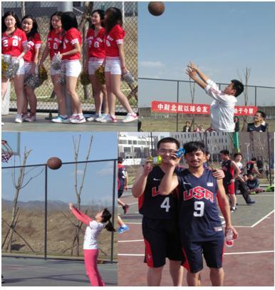 2013年4月13日星期六下午两点,在中财沙河校区的篮球场上进行了北航谈球吧与中财会计公司的篮球友谊赛,分别有男篮对抗赛,女篮对抗赛,技巧挑战赛,三分球大赛等部分组成。中场休息时中财的美女拉拉队献上了精彩的表演,活跃了现场气氛。