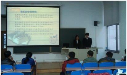 参加答辩的三个年级(2010级、2011级、2012级)共17个班的答辩代表依次进行了答辩,在6分钟的展示过程中,他们分别从本班的学习目的、学习态度、学习纪律、学习效果、课外科技文化活动等方面充分展示了班级在2012-2013学年里的学风建设情况,并详细回答了评委老师的相关提问。2013级新生骨干也到场观看、学习了答辩过程。