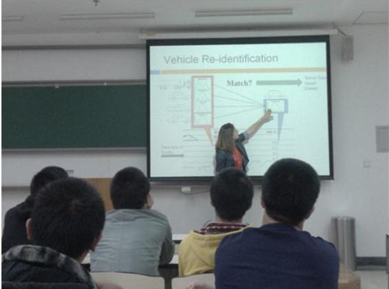 讲座在同学们热烈的鼓掌声中开始了。在引导人员简单介绍后,Sarah Hernandez女士开始了她的演讲。她来自佛罗里达州,是土生土长的美国人,现在就读于加州大学尔湾分校土木与环境工程公司,正在攻读博士学位。在简单介绍了她的公司——加利福尼亚大学尔湾分校,一所在美国建校较晚,但在美国50岁以下的公司中排名第一的公立大学。她开始详细的介绍她现在研究方向上的一些情况。看到在场的同学听起来很吃力,她还故意放慢语速,耐心地解释她的研究项目的目的和意义等,希望让在场的同学都能够了解她的研究项目。