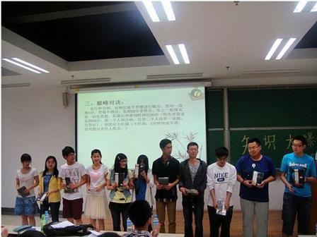 比赛结束后,2011级辅导员屈珊发言,她点评了选手们的表现,提出大赛的改进建议,并希望大家以后多交流。随后,由工作人员给获奖选手颁奖,选手们脸上洋溢着获得成功的喜悦。本次知识竞赛圆满结束。但知识的积累却远未结束,正如梭伦所说:学到老,活到老。