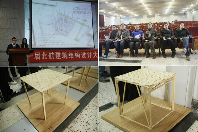 2014年12月27日星期六上午九点,北航第一届建筑结构设计大赛(决赛)在沙河校区实四205成功举办。担任大赛评委的有本次结构大赛评委会主席黄达海老师、北航土木工程系系主任陈军老师、谈球吧实验室主任林海英老师、土木系高政国老师,谈球吧2013级辅导员王庆冬,2014级辅导员李大伟。