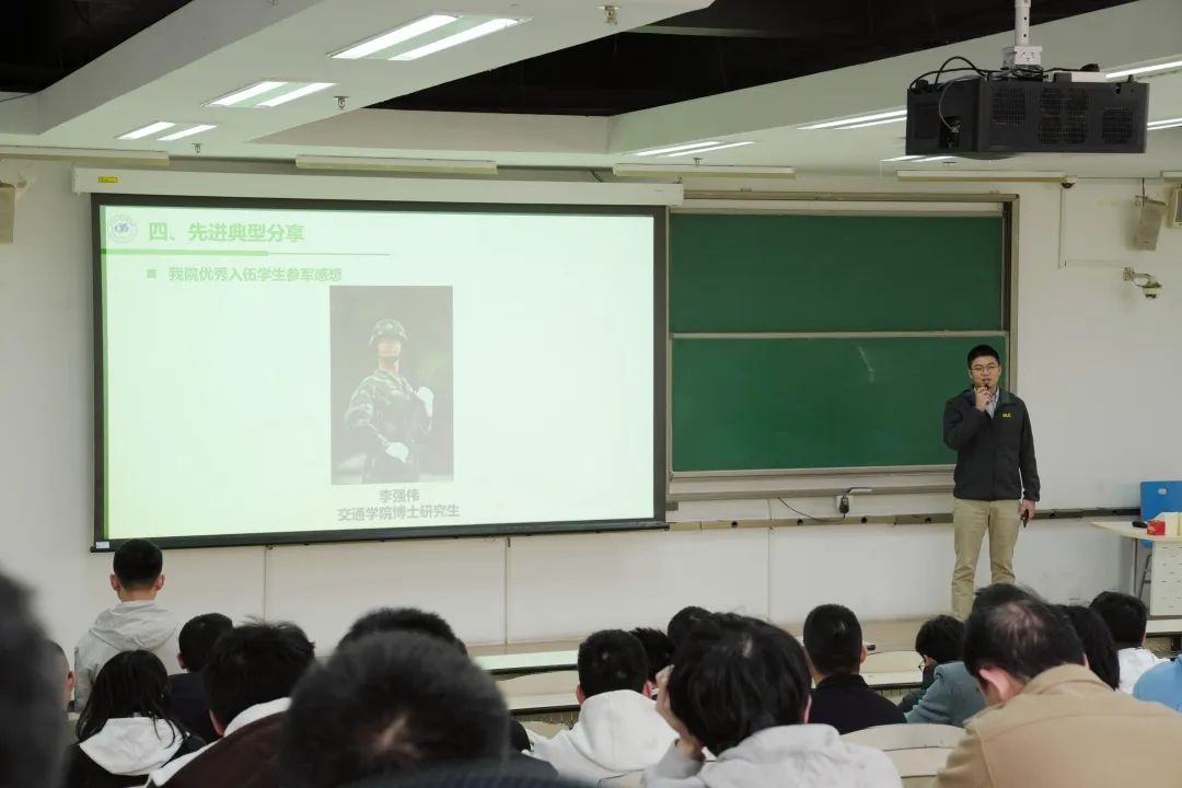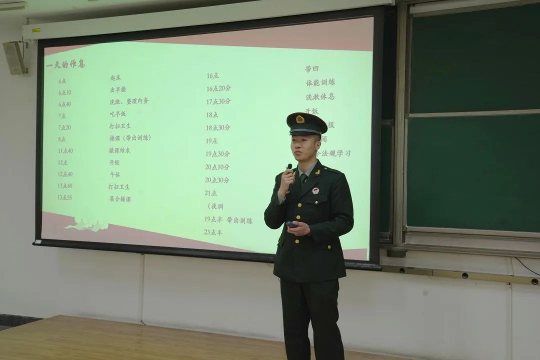 李强伟细数了参军之前的心路历程,他从退伍后的有关优待政策讲起,讲述了当兵之后个人生活与人生际遇的变化,强调了部队生活对个人发展的积极影响。张海分享了在部队期间参与文件撰写等工作的经历,体现了当代军人朴素的作风和勤勉的精神。吴国盛以部队作息表为引,展现了军人们朴实严谨的生活作风,他从入伍的选择到生活习惯的改变,给计划入伍的同学提出了详实的建议。